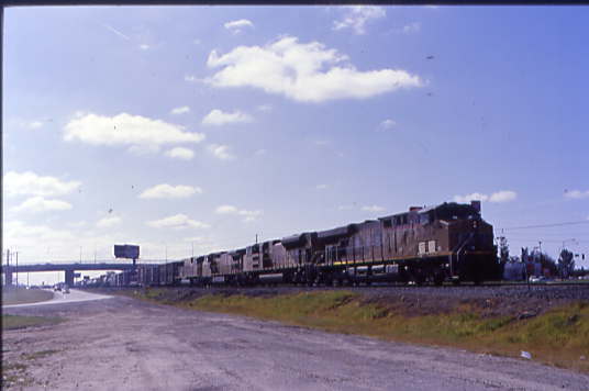 A Union Pacific freight leaving Fresno Yard; we then drove along the yard's east side.