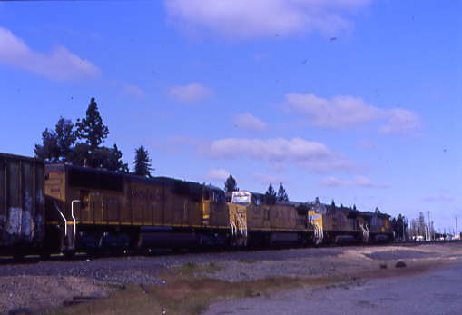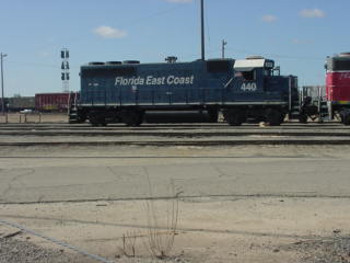 The San Joaquin Valley Railroad, part of Rail America, had family member Florida East Coast GP40 440, ex. SOO Line 4649, exx. Milwaukee Road 2023, nee Milwaukee Road 197 built by Electro-Motive Division in 1966, in the yard.
