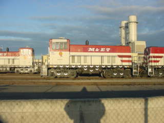 Modesto and Empire Traction 70 ton switcher 607, nee Oregon, Pacific and Eastern 10 built by General Electric in 1952. From here we drove Ken to the Modesto Amtrak station where he would catch San Joaquin 712.