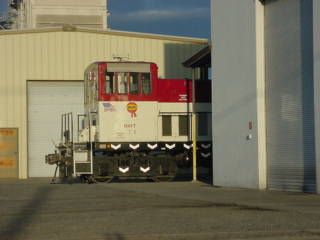 On the other side of the shop building was Modesto and Empire Traction 70 ton switcher 601 built by General Electric in 1949.