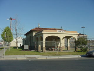 The street side view of the Southern Pacific Bakersfield station, built in 1889. Our next stop would be Edison.
