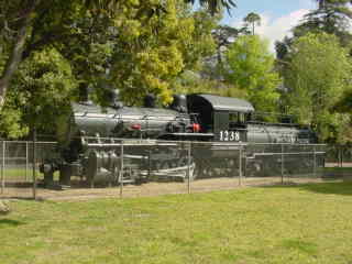 Southern Pacific 0-6-0 1238 built by Baldwin in 1918, sits on display in Roeding Park in Fresno.