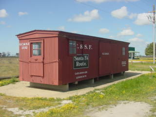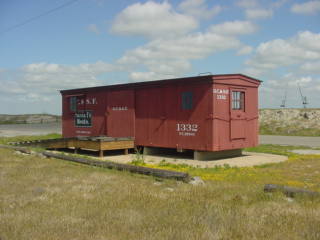Gulf, Colorado and Santa Fe wooden boxcar 1332. The groundskeeper then opened it for us.