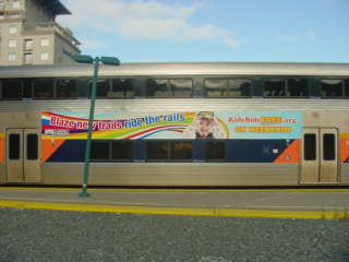 Capitol Corridor Train 527 arrived with Pacific Surfliner-style coach 6461 with "Blaze a Trail, Ride the Rails Kids Ride Free on Weekend Capitol Trains" slogan. I had seen this trainset leaving Sacramento so knew it would be seen again this morning.