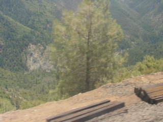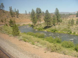 California Zephyr 6 7/6/2009The California Zephyr in Emeryville which consisted of P42DCs 183 and 134, baggage 1247, transition 39013, sleepers 32077 "District of Columbia" and 32096 "Michigan", diner 38045, lounge 33038 and coaches 34055, 34016 and 31033. I had Room 4 in the 32077 with JR as my Sleeping Car Attendant. We departed a few minutes late due to heavy baggage loading then the sleeping car passengers were called to the dining car for a light breakfast, where I had Rice Krispies along with some bacon and a roll.