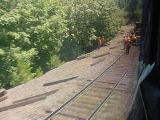 The California Zephyr was about to cross the Carquinez Straits. We were delayed at Suisan Marsh by track work on our mainline and we had to wait for Capitol Corridor Train 533 before we could continue to Davis. I listened to Sweet "Blockbuster! the Best of Sweet" then it was back across the Yolo Causeway and into Sacramento, our first fresh air stop and crew change. We departed on time and proceeded to Roseville as I enjoyed the second Sweet CD which lasted into the Foothills of the Sierra Nevada Mountains.