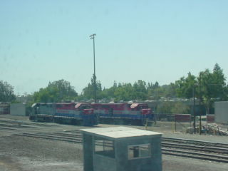 A part of the Circus Train at Calwa before we reached Fresno, where I took a fresh air break at a very hot afternoon. We departed on time and The Scorpions took me past Madera, after which I listened to Metallica's "Death Magnetic" which lasted almost to Stockton, while I worked on the September show for the Orange County Railway Historical Society. It was an early arrival into Stockton where I detrained.