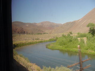 Two waterfalls in Nevada before we reached Reno, our next fresh air stop and crew change. We departed here on time and continued east to Winnemucca, as the Zephyr no longer stops in Sparks.