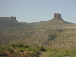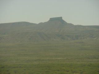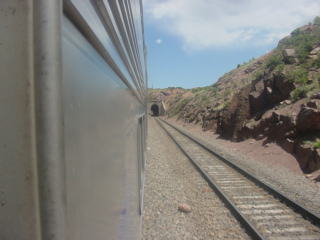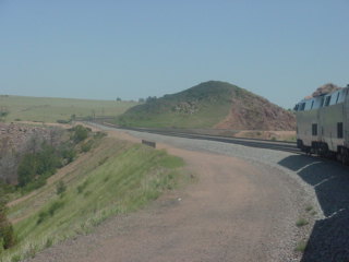 Interesting rock formations as the train headed to the first of the two crossings of the Continental Divide. Two? The Union Pacific built their railroad across a basin from which water never escapes, so they cross the divide twice.