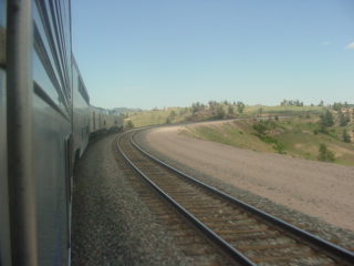 Curving into Burford. We ran Borie then took the cutoff to Speer, where we changed Union Pacific pilot engineers and were delayed slightly before we proceeded south towards Denver. I put on my CD of Queen "Cosmos Rockin'".