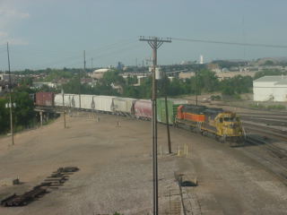 The view of the south end of the BNSF Yard. In the morning I would walk over to Enterprise, pick up the rental car and start the first of the next train trips, this one on the Georgetown Loop Railroad, but that is another story.
