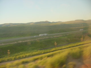 7/07/2009 I awoke while the train was sitting in Salt Lake City, the next crew change point. At departure time, the train reversed out of the station before continuing towards Ogden and Wyoming. I could see the Utah Capitol in Salt Lake City then watched the Wasatch Mountains and napped as we passed through Ogden and started up Weber Canyon. I had hoped to photograph Devil's Slide but we passed that in darkness. I arose just before Echo, Utah and made my way to the lounge car.