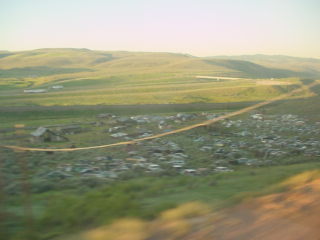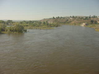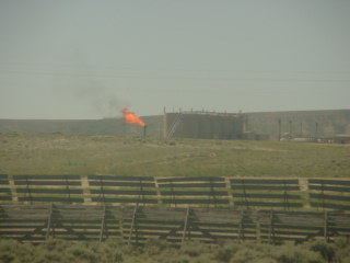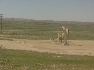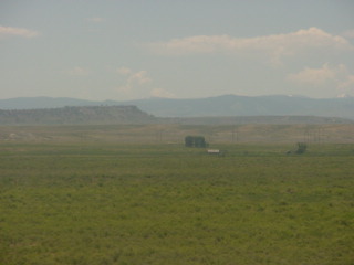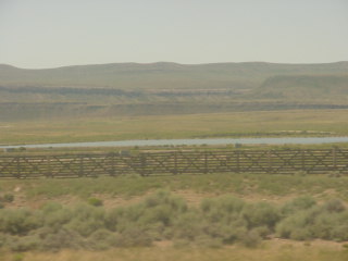 Snow fences are along many miles of the Union Pacific tracks across Wyoming and are also here in places in the basin. We crossed the eastern divide and soon came to Rawlins which we just slowed for.