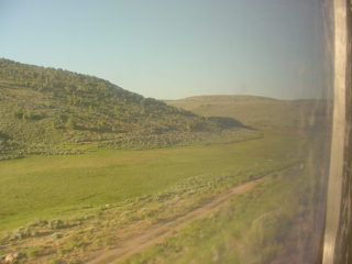 I was in the dining car for French Toast and sausage patties as the train dropped down into Evanston, Wyoming.