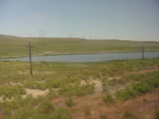 A lake east of Rawlins with some of those snow fences in the foreground. I put on my CD of Jethro Tull "Catfish Rising" next as we proceeded east towards Laramie.