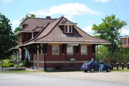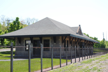 New York Central Westfield station built in 1904 for the Lake Shore and Michigan Southern Railway, which was absorbed by the New York Central Railroad in 1914. It is a one-and-a-half storey brick, terra cotta and sandstone structure in the Romanesque style which served as the main transfer point for rail passengers destined for the Chautauqua Institution. The Jamestown, Westfield and Northwestern Railroad interurban, serving the eastern part of Chautauqua used the station. The Chautauqua Traction Company, serving the Chautauqua hamlet, used the Nickel Plate Railroad's station in Westfield. It was listed on the National Register of Historic Places in 1983 as the Lake Shore and Michigan Southern Railway Station.