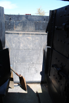 Erie Dock Company electric locomotive 7 built by Atlas Car Company of Cleveland in 1910. It received power from an electric third rail and was specifically designed for use as an ore/coal car shunt tending the Hulett ship unloaders that used to be commonly seen on the docks of the Great Lakes. These locomotives ran on a separate set of tracks located between the main tracks for the ore and coal cars being loaded. With their arms extended out on both sides, these locomotives pushed the empty rail cars into position for loading and then moved loaded cars away. Number 7 operated on the Erie docks until the mid-1950's, then at Whiskey Island in Cleveland until 1992. Erie Dock Company was a wholly-owned subsidiary of the Pennsylvania Railroad.