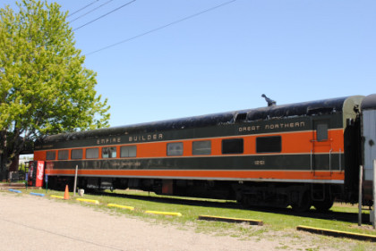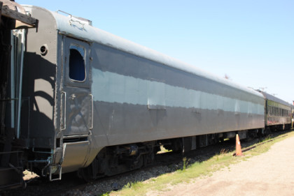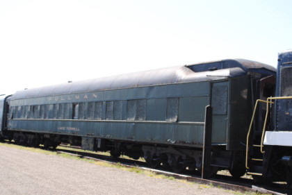 Great Northern 8 duplex roomette-3-double bedroom-1 compartment-4 open section sleeping car 1273 "Pend O'Reille River" built by Pullman in 1950. It is the only lightweight sleeper of this unusual configuration in the museum's collection. The exterior was re-painted in 2013 and remains in its as-built condition; it was never was part of Amtrak.