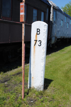 A land line marker for the Dunkirk, Allegheny Valley and Pittsburgh Railroad. This line ran between Dunkirk, New York and Titusville, Pennsylvania. It extended 90 miles from the New York Central mainline at Dunkirk, south-southwest to Titusville and served small farm towns in upstate New York then reached into the oil field region of northwestern Pennsylvania.