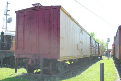 Lake Shore and Michigan Southern Railway 36 foot wooden box car 23107 built in 1907. It was most recently used by the East Erie Commercial Railroad as a maintenance car and moved to LSRHS Museum in May 2007.
