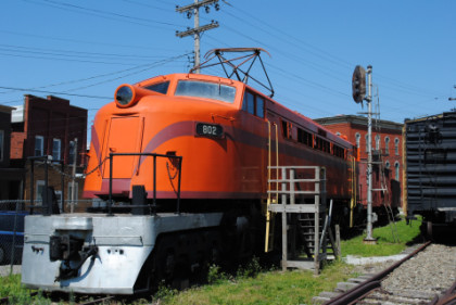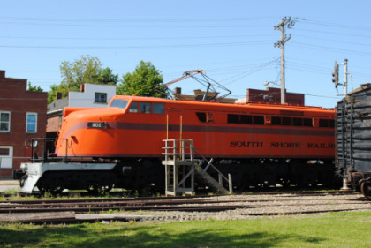 Chicago, South Shore and South Bend "Little Joe" 802 built by General Electric in 1948. It is one of only three known to exist from the original twenty built and, with 803, was the last electric freight locomotives to operate in North America. This engine was retired in 1983 and was at the Baltimore & Ohio Railroad Museum in Baltimore since it was decommissioned. CSX, which had acquired the B&O line, agreed to give Little Joe to the Pennsylvania museum and hauled the locomotive to the point where its rails came closest to the museum, which was Cleveland.