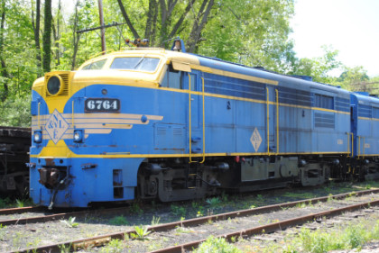 New York & Lake Erie Railroad FPA4 6764, ex. Northwest Pennsylvania Railroad Authority, exx. New York and Lake Erie 6764 1998, exxx. private owner 6764 1996, exxx. VIA 6764 1990, nee Canadian National 6764 built by Montreal Locomotive Works in 1958.