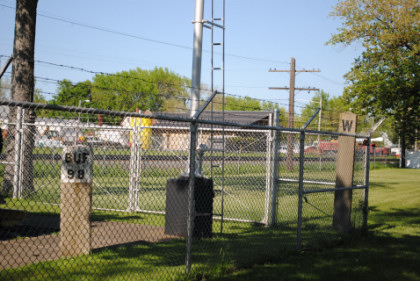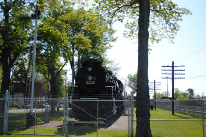 The steam engine and semaphore signal, whiche stood along the Erie tracks at XN Tower in the Shenango Yard, where the Bessemer tracks crossed the Erie tracks. It was donated by Conrail.