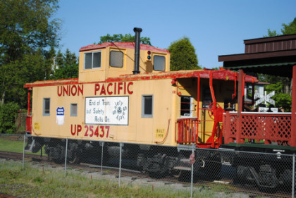 Union Pacific Caboose 25437 "End of Train but Safety Rolls On!" built by the railroad in 1959 and retired in 1990. We met Scott, who opened the museum building for us.