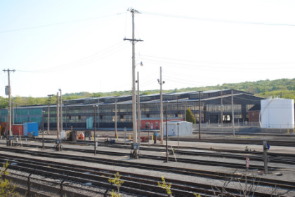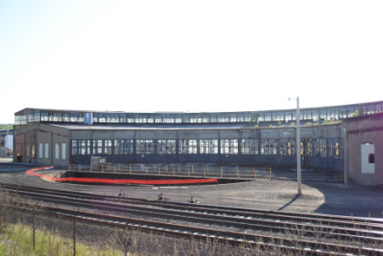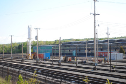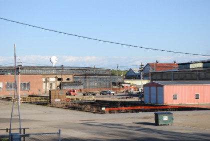 An electrically driven turntable serviced all 17 stalls and still serves to turn diesel locomotives. The brick Powerhouse located south of the Erecting Shop housed boilers that supplied steam to the entire complex. Farther south are the Wheel Shop, which maintained wheels, axles and bearings for the system, and a large, partially open Freight Car Shop. This served as the railroad's heavy car repair shop.