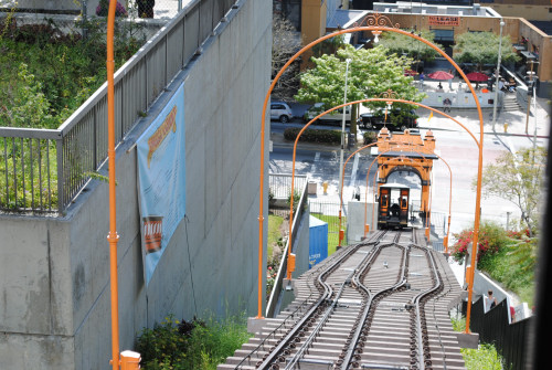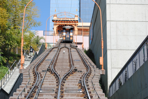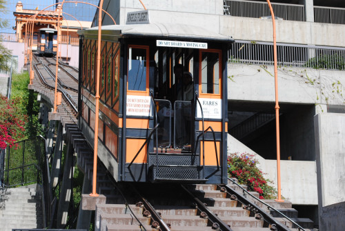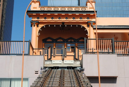 I took Pacific Surfliner 565 from Santa Ana north to Los Angeles Union Station and bought a Metro Day Pass for the short trip to the Pershing Square station then rode the long escalator up to ground level and made my way over to the Angels Flight to write a story about it.