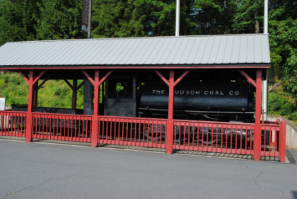 Anthracite Museum 30" gauge 0-6-0T 61, ex. Wayne County Historical Society donation in 191, exxx. Glen Alden Corporation 1960, exxxx. moved to Larkspur, Pennsylvania, nee Hudson Coal 61 built by Vulcan Iron Works in 1919 sits covered in front of the museum.