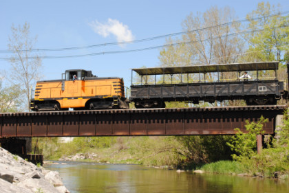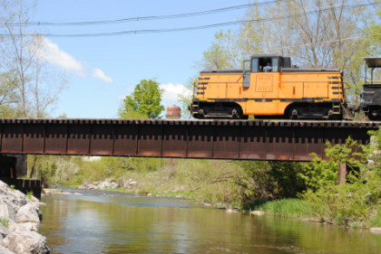 Our train at Curriers Station. We all reboarded for the quick trip back to Arcade then it was announced we would do a photo runby at the Cattaraugus Creek bridge. Since the car was parked there, Randy and I would leave from there after the runby and not reboard for a one-block trip back to the Arcade station.