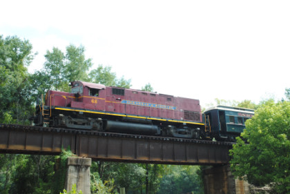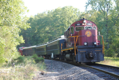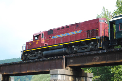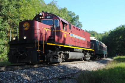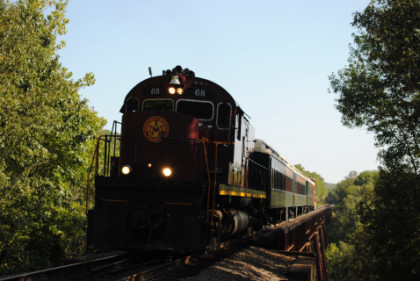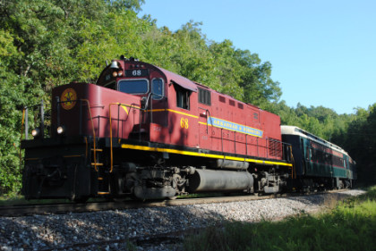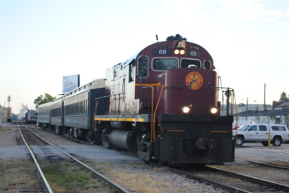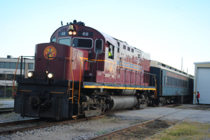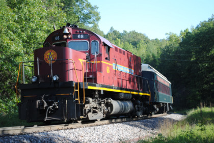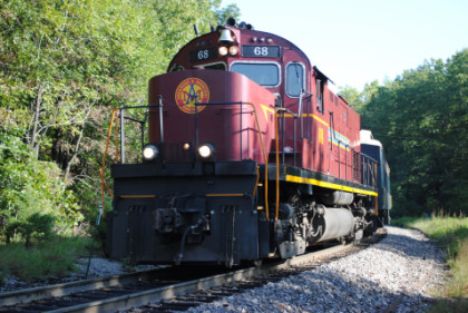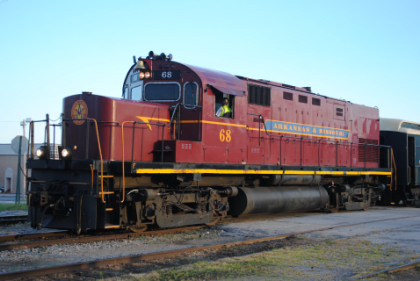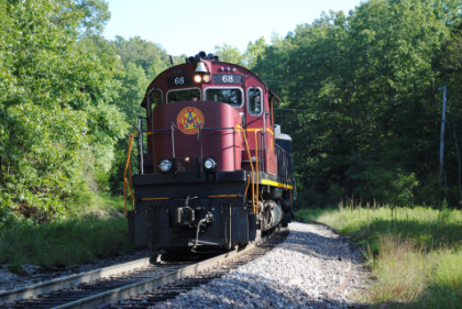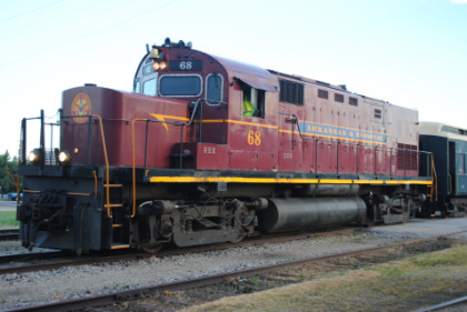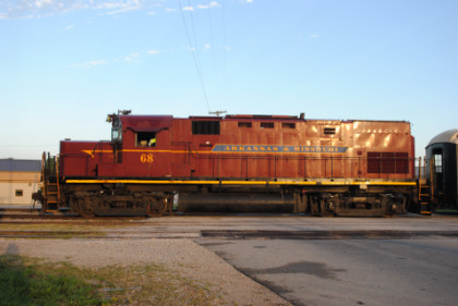 Arkansas and Missouri C-420 68, ex. Indiana Hi-Rail 311, exx. Arkansas and Missouri 411, exxx. Delaware and Hudson 411, nee Lehigh Valley 411 built by American Locomotive Company in 1964, would power our train today.