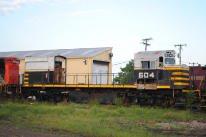 Arkansas and Missouri C-424 604, ex. Hudson Bay Railway 604, nee Belt Railroad of Chicago 604 built by American Locomotive Company in 1966, and used as a parts source.