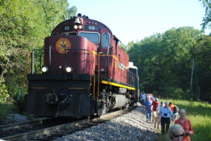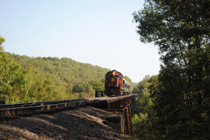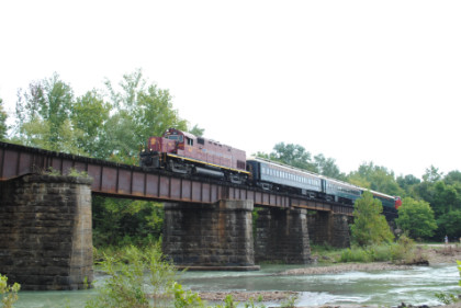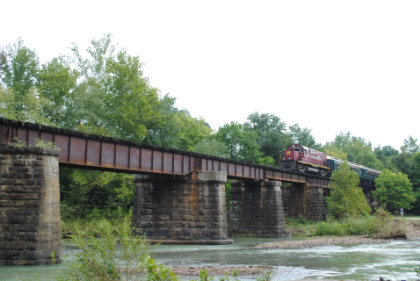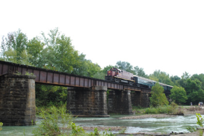Photo runby 2. We all reboarded the train and continued sout, going through Stewart before running along the bluffs with interesting rock strata then on into Van Buren, but unlike my last trip here, did not stop at the station.
