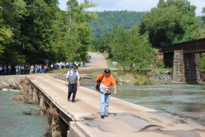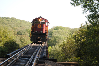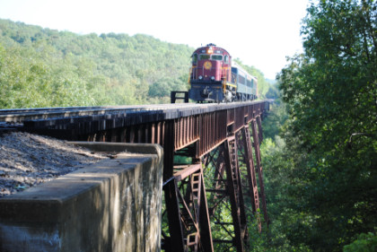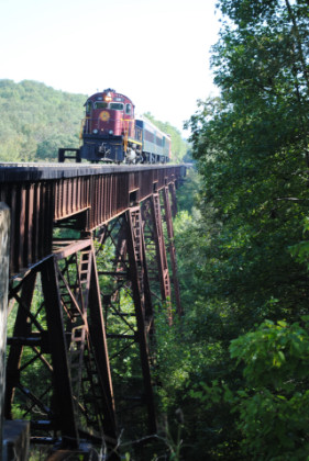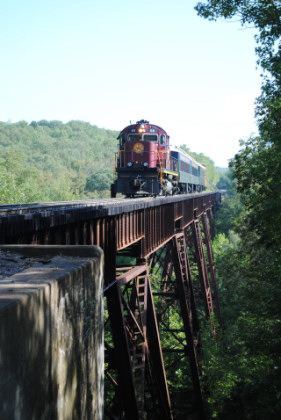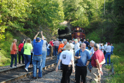 Static photograph location three at the Winslow Tunnel. Once everyone had their pictures, the train was moved forward and we all reboarded but only went a short distance and crossed Trestle 1, which is 780 feet long and 125 feet high, for the next set of photographs.