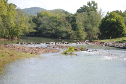 We went by another flood damage area along our route then went underneath Interstate 540 before crossing Clear Creek again; the creek changes into Frog Bayou near the town of Mountainburg, then underneath Interstate 540 for the last time on this trip. Straight track is hard to find on this railroad.