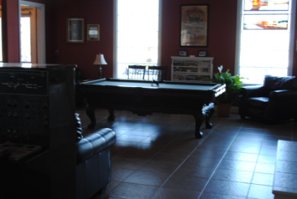 Out in the lobby is a pool table.