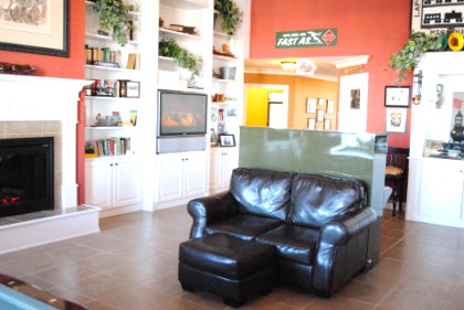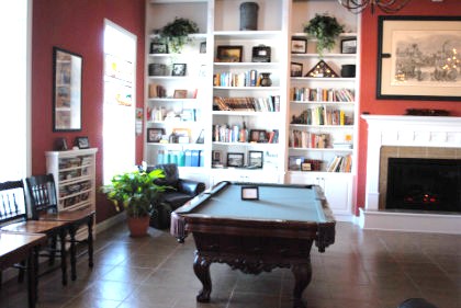 The pool table and library.