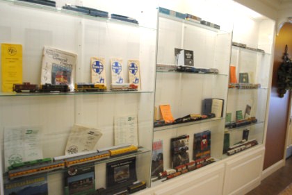 The main hallway with display cases of railroading.