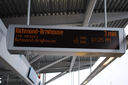 Our train ready to take us back to Vancouver at Richmond-Brighouse station, the south end of the Canada Line. We took the Canada Line back north to the Olympic Village station where we detrained and followed the signs to our next ride of the day.