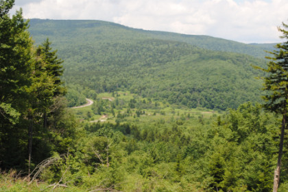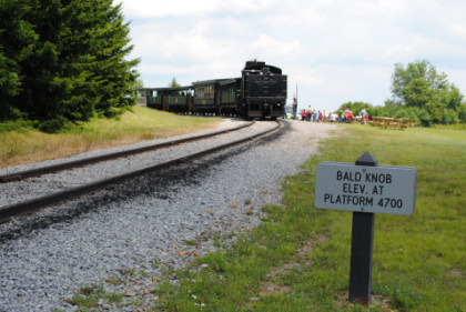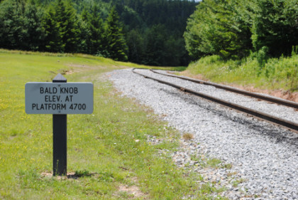 The last of the grade to the top of Bald Knob at the platform is 4,700 feet. The summit of Bald Knob off to the southwest is 4,842 feet and is the third highest peak in West Virginia.