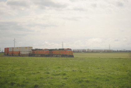 Passengers enjoying the fresh air at Argyle. At 1:12 PM the Conductor said "All aboard!" so we all reboarded and I listened to my CD of Alice Cooper "Dragontown" and hoped for the best I would not be sent there! I then started to play Solitaire on the computer and at 1:37 PM, the Southwest Chief crossed over at Argyle and we were once again on our trip east at track speed. However, that did not last long we came to another stop and the BNSF decided to run a freight train across it first to test the track before it would be our turn. I walked to the rear door as the train started slowly moving east.