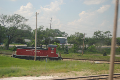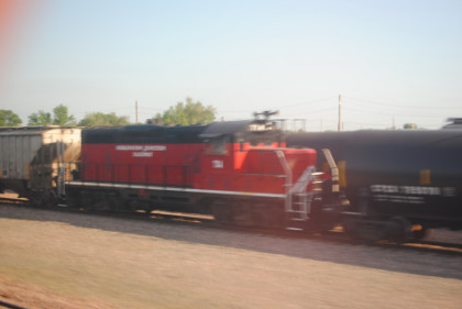 A Burlington Junction Railroad locomotive. There was a crew change and fresh air stop at Ottumwa.