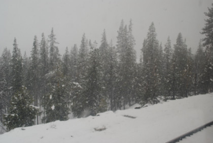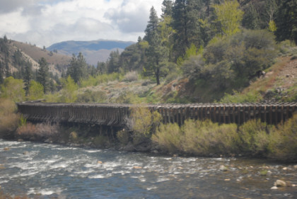 A flume along the Truckee River on the way to Truckee, our next station stop of the morning. From here we climbed up Donner Pass.