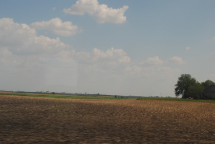 Illinois countryside on the way to Galesburg. As there was no public address system from the dining car, I was told to come in at 4:55 PM and was seated with a couple heading to Fort Bragg, California and a lady going to California who had lost her voice. I had the steak and vanilla ice cream and during dinner, we crossed the Mississippi River into Iowa, then after Mount Pleasant, I had a nice shower and watched the bonus material of the film I had watched this afternon. Nearing Ottumwa, I had the camera ready.