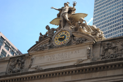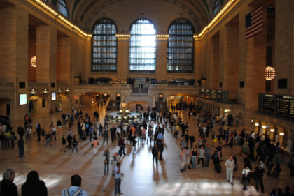 Interior views. Grand Central Terminal is a commuter rail terminal located at 42nd Street and Park Avenue in Midtown Manhattan and is the southern terminus of the Metro-North Railroad's Harlem, Hudson and New Haven Lines, serving the northern parts of the New York metropolitan area. The terminal also connects to the New York City Subway at Grand Central–42nd Street station. The terminal is the third-busiest train station in North America, after New York Penn Station and Toronto Union Station.