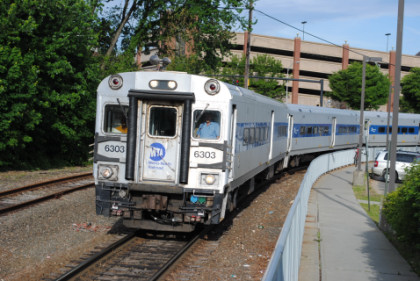 Metro-North Shoreliner III cab car 6303, built by Bombardier in 1991, bringing Metro-North Train 6813 into the station.