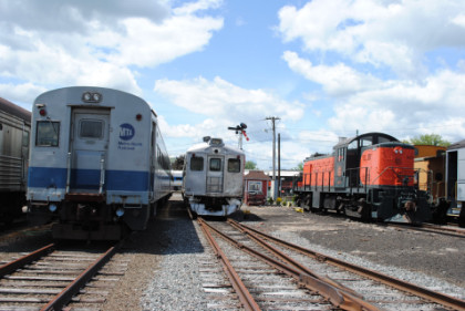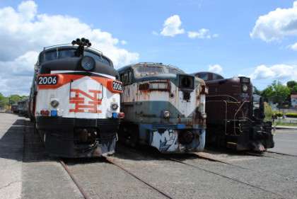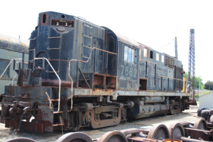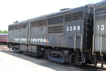 New York Central FPB-4 3399, ex. Penn Central 3399, exx. Windsor & Hantsport 6867, exxx. VIA 6867, nee Canadian National 6867 built by Montreal Locomotive Works in 1959 and arrived at the museum in 1999.