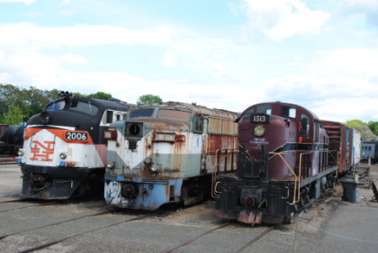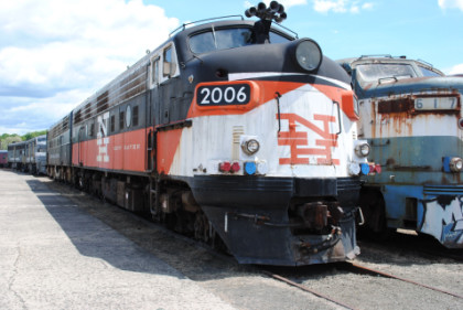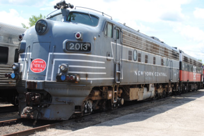 New York Central FL9 2013, ex. Connecticut Department of Transportation 2006, exx. Metro North #512 (assigned, not used), exxx. Penn Central 5026, nee New York, New Haven and Hartford 2026 built by Electro-Motive Division in 1955. It was leased from the Connecticut Department of Transportation and arrived in 2001.